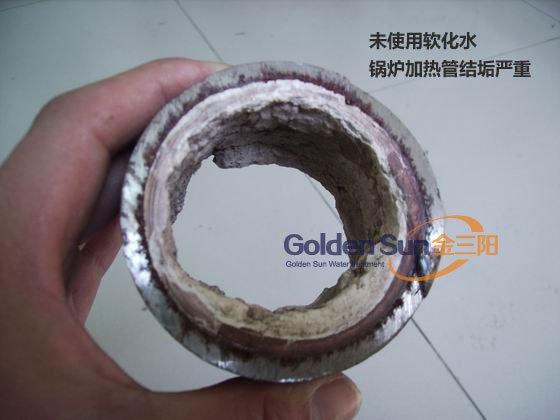 1、鍋爐鋼板、管路因過熱而被燒損 鍋爐內(nèi)如結(jié)有水垢,又要保持一定的出力(工作壓力和蒸發(fā)量),這樣只有增加火側(cè)的溫度。因此水垢越厚,熱導(dǎo)率越差,鍋爐火側(cè)的溫度就得越高。 從試驗所得數(shù)據(jù)可以看出,對于工作壓力為1.4MPa的鍋爐,火側(cè)的溫度在900~1200℃之間,水側(cè)溫度為197℃,未結(jié)水垢時的鋼板溫度,只有215~250℃。同樣類型鍋爐,鍋板上結(jié)有0.8~1.0毫米的混合水垢時,鋼板溫度比無水垢時約高134~160℃。當(dāng)20#鋼板達(dá)到315℃時,其力學(xué)性能開始下降,當(dāng)達(dá)到450℃時,就會因過熱而蠕變。因此水處理不好,鍋爐生成水垢,是很容易使鍋爐金屬燒損。